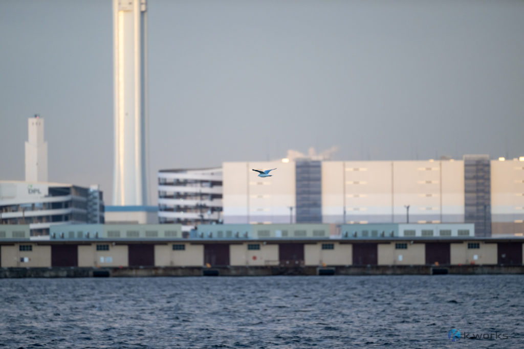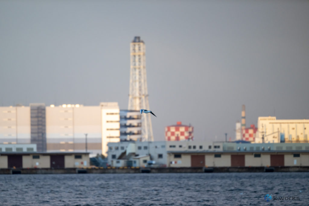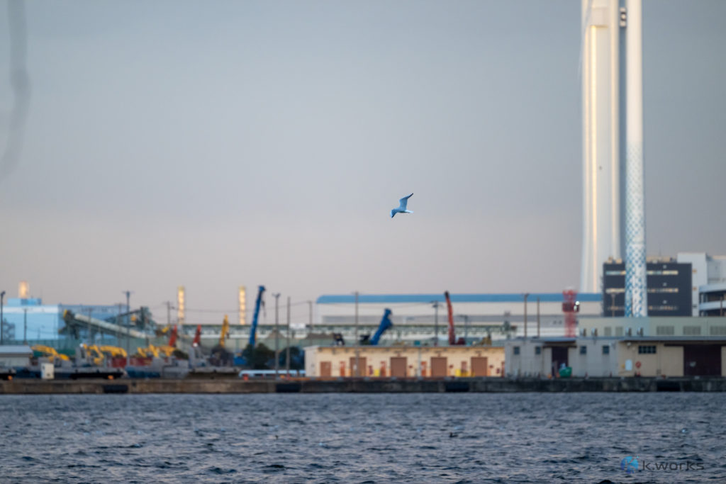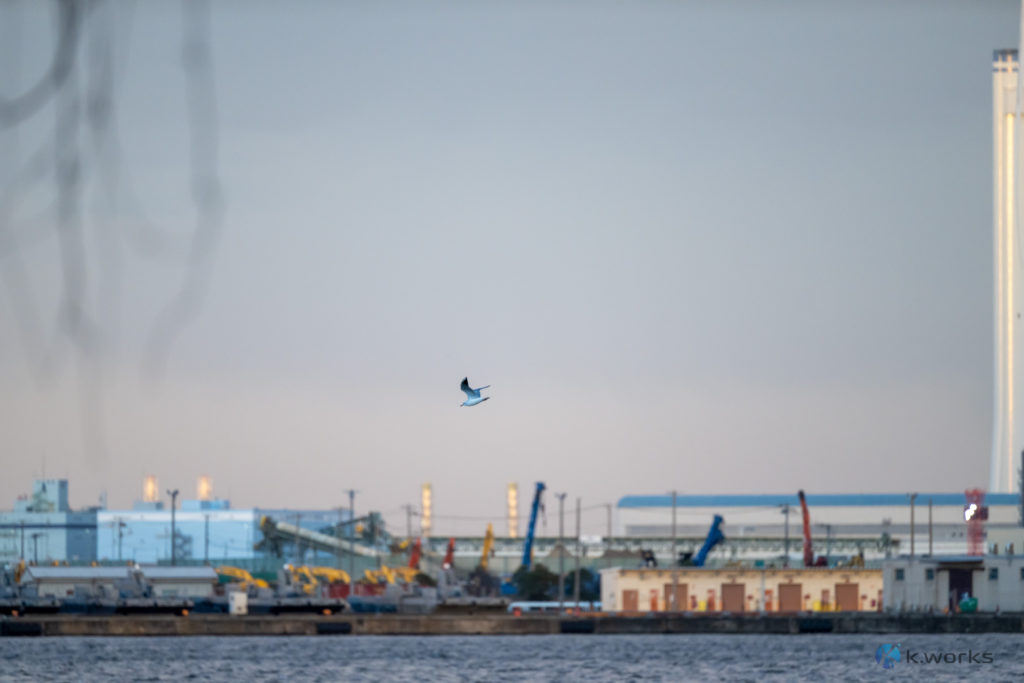 臨港パークからカモメが屯している場所辺りまでがちょっと遠い。焦点距離は既に400mm。これ以上は寄れません。